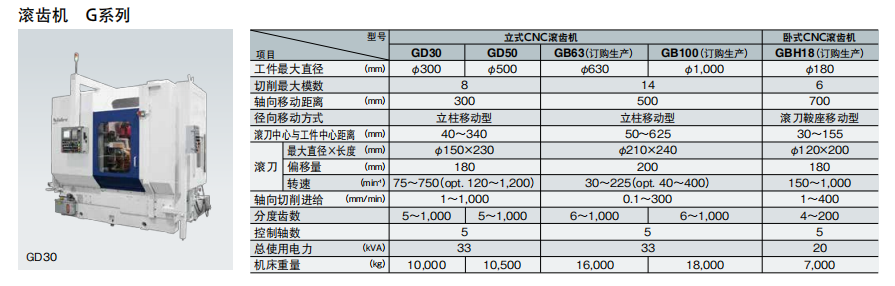· G系列提供多種滾齒機(jī),適用于汽車、飛機(jī)、船舶、渦輪發(fā)電機(jī)等多種產(chǎn)品。